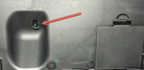 3. Press and hold the reset peg in for 5 seconds, then release. The reset peg is a small, black plastic peg directly to the left of the battery compartment when looking inside Livi from the rear as shown below.